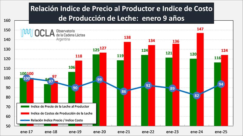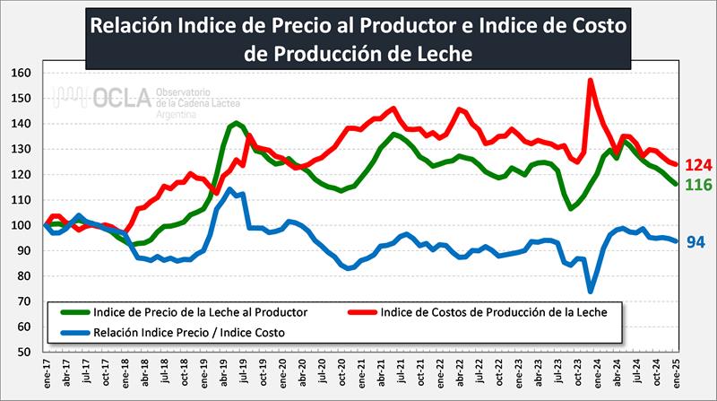 Se calcula el Indice de Costos de Producción de Leche, actualizado por IPC y se referencian todos los costos mensuales a enero 2017 = 100.