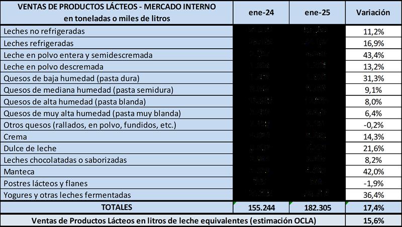 Ventas de Productos Lácteos en el Mercado Interno – enero 2025 26/2/2025