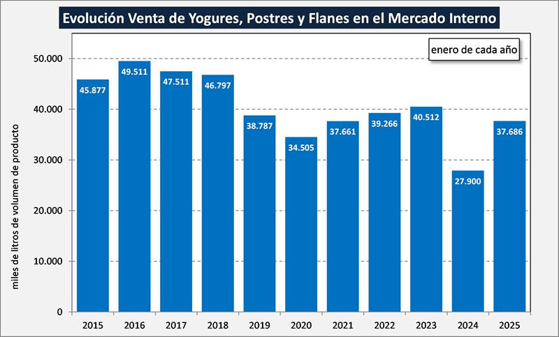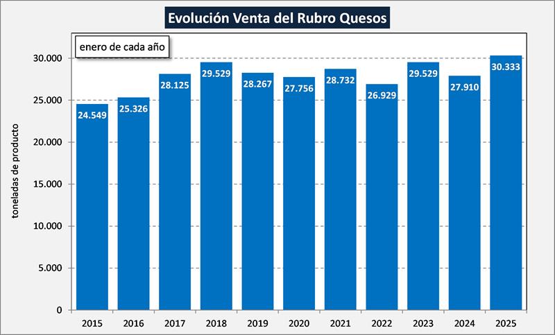 La comparación interanual (ene/25 vs ene/24) indicó un incremento del 17,4% en volumen de productos y una suba del 15,6% en litros de leche equivalentes. Ya se venía marcando en los últimos meses una importante desaceleración en la caída interanual del primer semestre de 2024, y se consolida la recuperación en el acumulado del año y en este inicio de 2025.