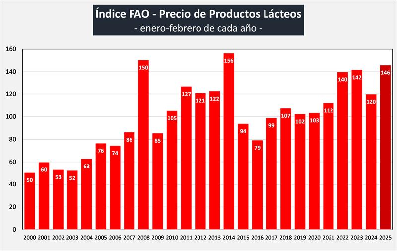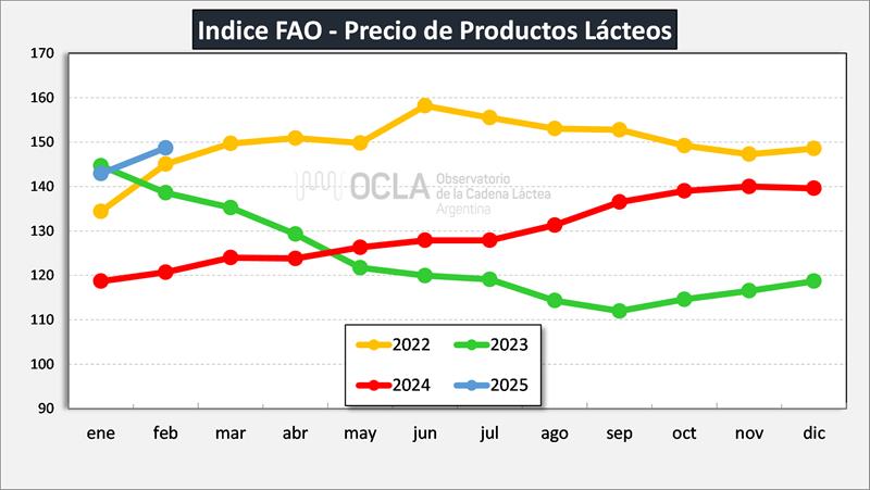 Indice de Precios de los Lácteos de FAO 7/3/2025