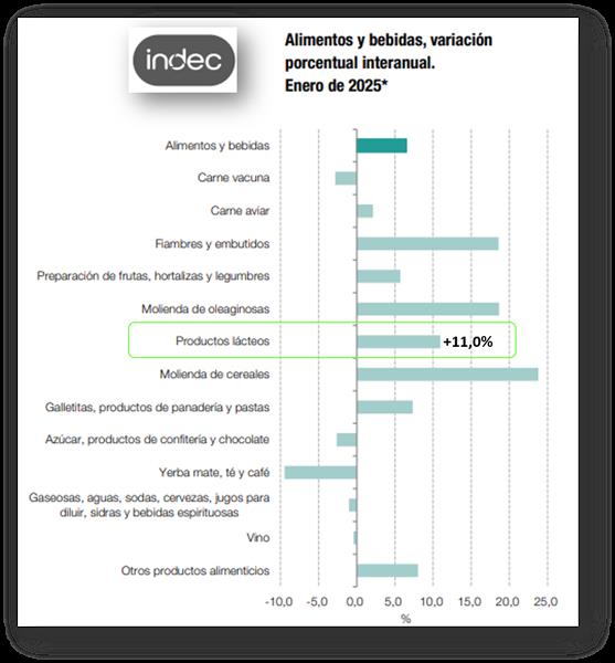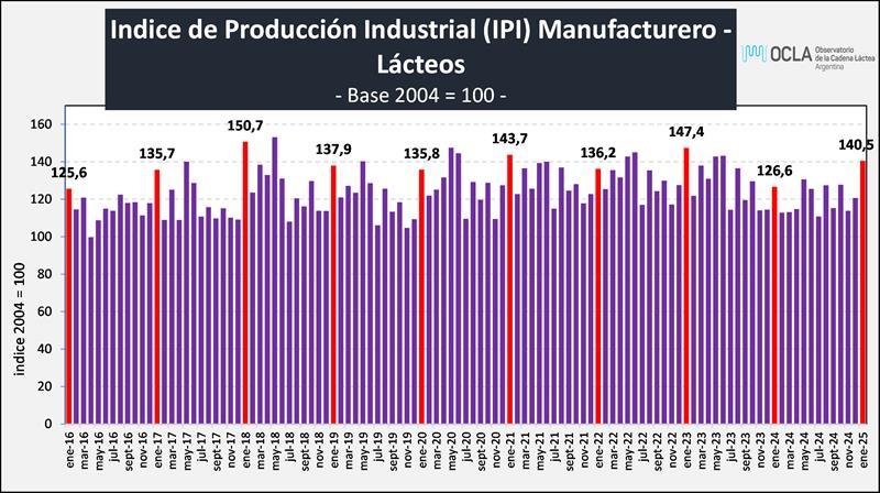 Índice de Producción Industrial Manufacturero – LÁCTEOS - enero de 2025