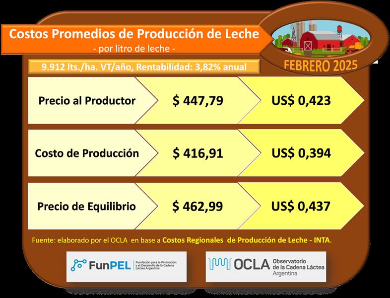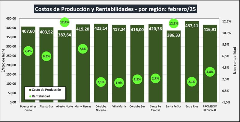 Costos Regionales de Producción de Leche, valores actualizados a FEBRERO del 2025 31/3/2025