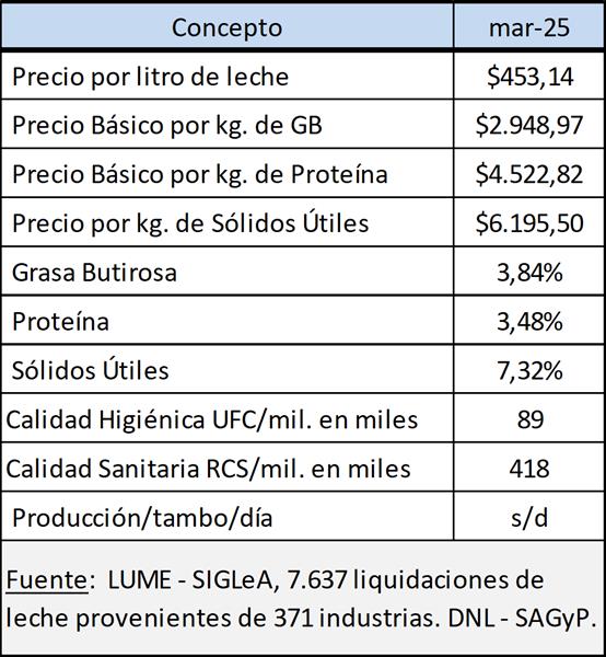 Estacionalidad de la Calidad de Leche: últimos 5 años