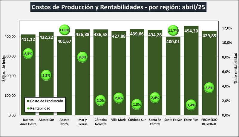 Costos Regionales de Producción de Leche, valores actualizados a ABRIL del 2025 23/5/2025
