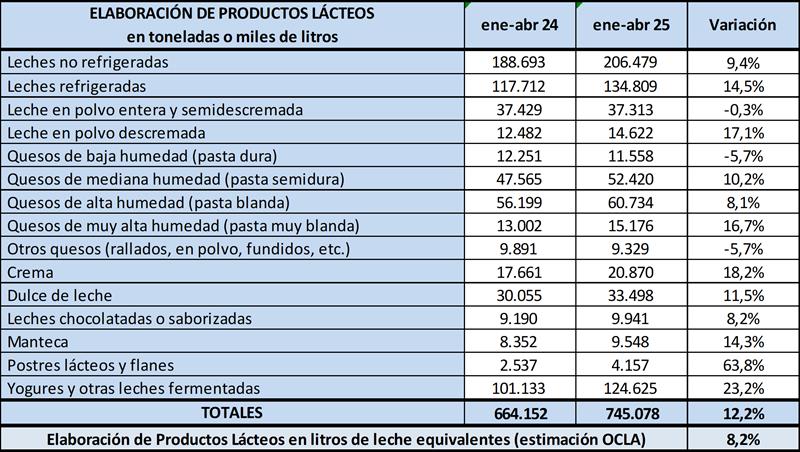 Elaboración de Productos Lácteos – a abril de 2025 26/5/2025