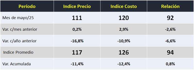 Relación Indice Precio e Indice Costo de Producción: mayo 2025 23/6/2025