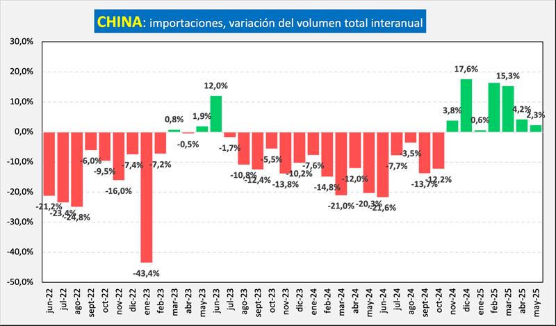 En 2025, la situación de demanda se revierte y se da un crecimiento en los primeros cinco meses del año del 7,6% en el volumen importado y tratando de recuperar a niveles de 2023.