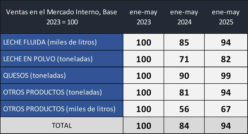 Ventas de Productos Lácteos en el Mercado Interno – mayo 2025 1/7/2025