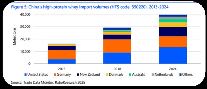 La industria láctea china está experimentando una transformación significativa, con oportunidades para invertir en la producción de ingredientes lácteos de alto valor y ricos en proteínas, en respuesta a la creciente demanda de nutrición y salud funcional por parte de los consumidores. Al expandir la producción de queso y proteína de suero, la industria podría reducir su dependencia de las importaciones y mejorar la seguridad de la cadena de suministro, preparándose para el crecimiento y la resiliencia futura.