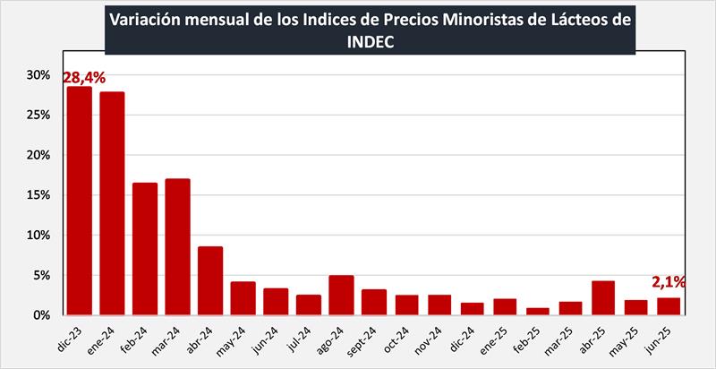 Se vino contraponiendo con esta desaceleración de los precios de los lácteos, un incremento de los índices salariales por encima, lo cual genera una expectativa más promisoria para recuperar los niveles de consumo de 2023, que tuvieron una importante caída en los primeros seis meses de 2024. De los 20 puntos de caída de los primeros meses de 2024, ya se han recuperado 15 puntos en lo que va de 2025.
