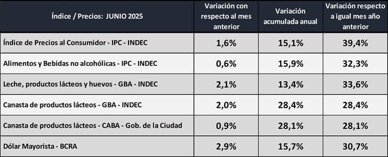 Precios de los lácteos al mes de junio de 2025 14/7/2025
