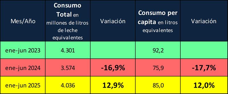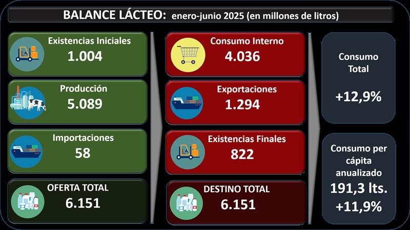 Análisis del Balance Lácteo a junio 2025 y comparación con igual período del año anterior: