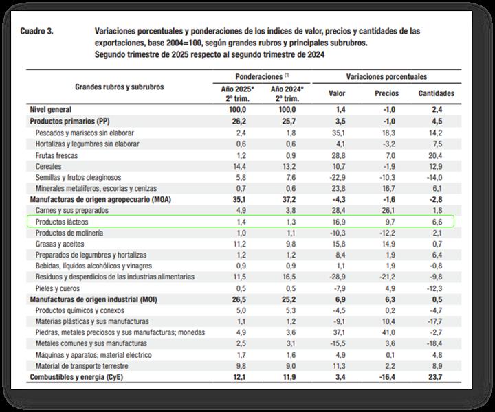 Cabe acotar que en el rubro lácteos (en este análisis en particular) hay una subvaloración del total exportado producto de que no se incluyen las exportaciones denominadas confidenciales o dentro del Secreto Estadísticos.