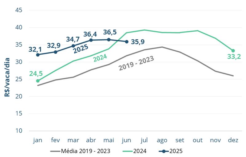La mayor rentabilidad, combinada con precios más favorables de la leche a principios de 2025, contribuyó a un escenario positivo para los productores, lo que puede haber incentivado la migración de la leche no formal a la formal, reflejándose en el aumento registrado en los datos divulgados por el IBGE.