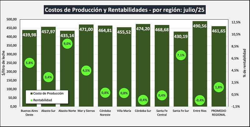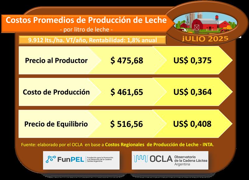 Costos Regionales de Producción de Leche, valores actualizados a JULIO del 2025 20/8/2025