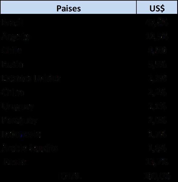 El destino de las exportaciones (en función al monto en dólares) se conformó: