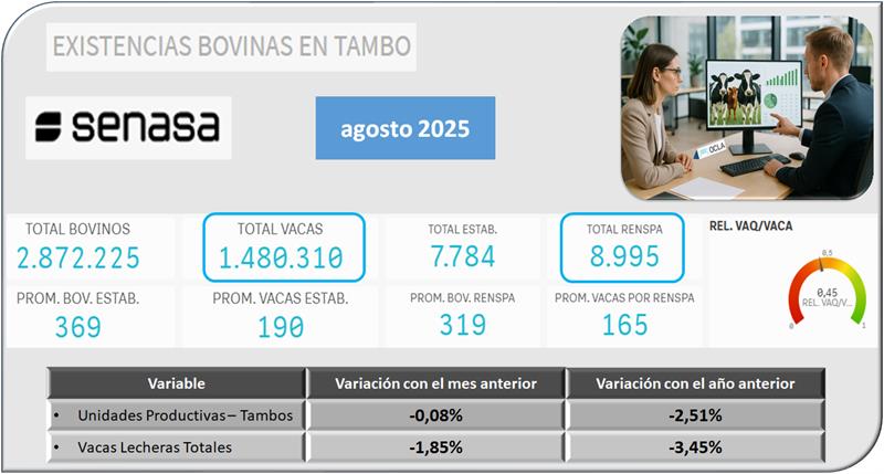 “A los fines del presente tablero de control se considera TAMBO a todo RENSPA que, a la fecha del reporte, se encuentra activo (sin fecha de baja), cuya actividad se encuentre vigente (sin fecha de baja), que cuenta con existencias de bovinos mayor o igual a 1 y cuyas existencias de vacas son mayores o iguales a 1”.