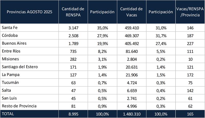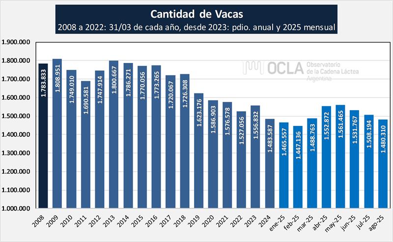 Evidentemente el crecimiento de los primeros ocho meses del año 2025 respecto a 2024 responde mayoritariamente al crecimiento de la producción individual, pero también en los primeros tres meses del año al crecimiento del rodeo que luego se fue igualando a la cantidad de vacas del año anterior.