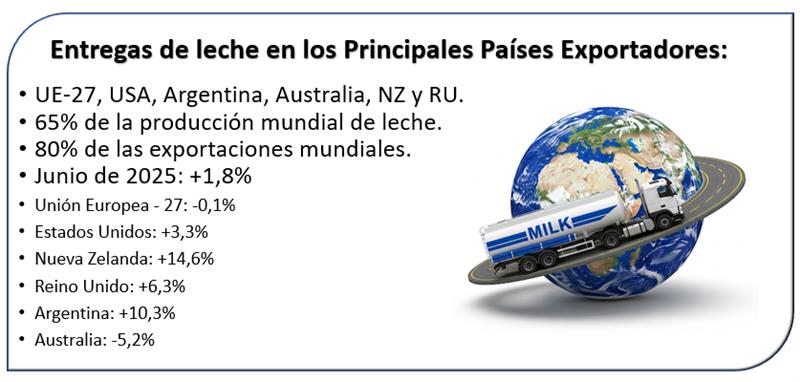 En conjunto, representan más del 65 % de la producción mundial de leche de vaca y alrededor del 80 % de las exportaciones mundiales de productos lácteos.