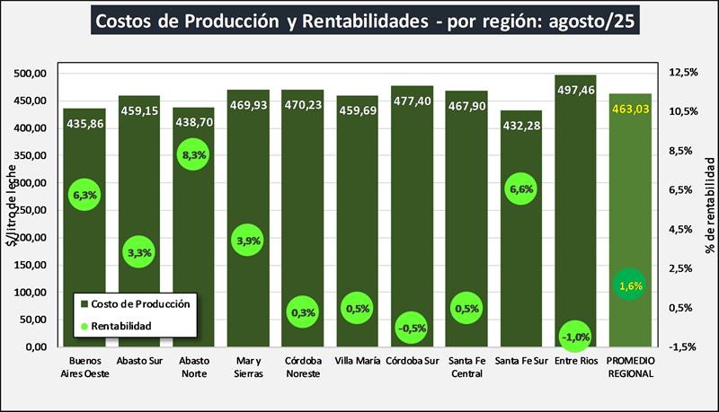 Costos Regionales de Producción de Leche, valores actualizados a AGOSTO del 2025 23/9/2025