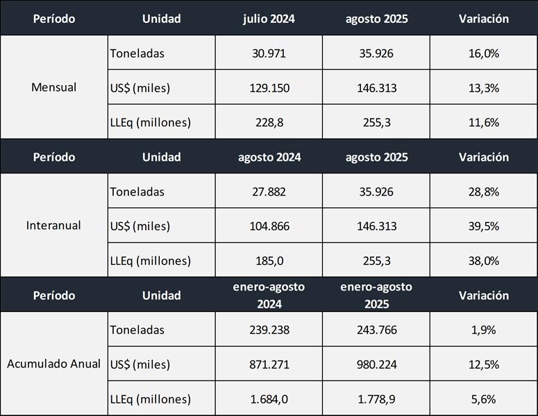 Exportaciones de Productos Lácteos – AGOSTO 2025 26/9/2025