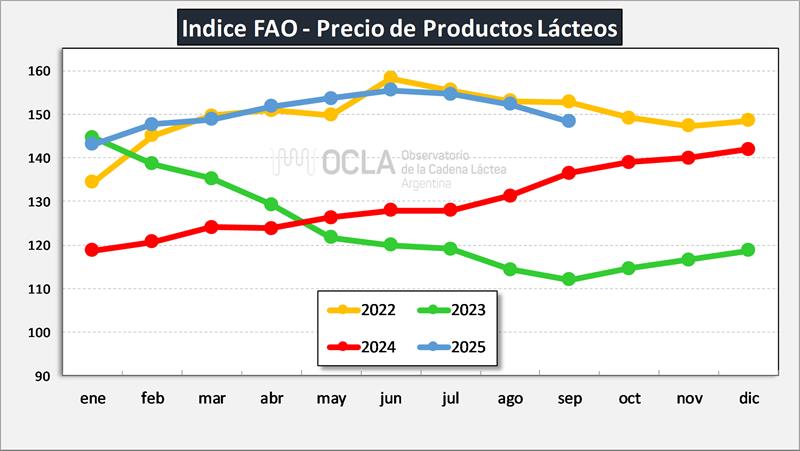 Indice de Precios de los Lácteos de FAO 3/10/2025