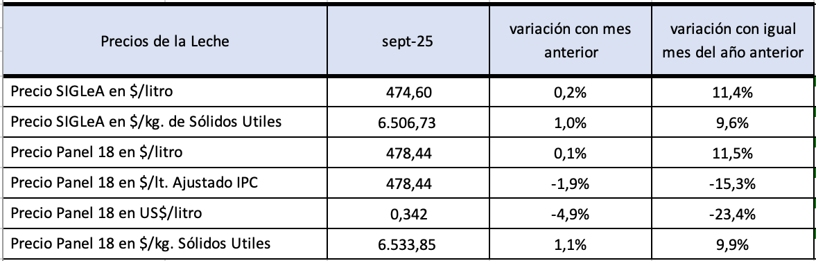 Precios de la leche al productor: septiembre de 2025 16/10/2025