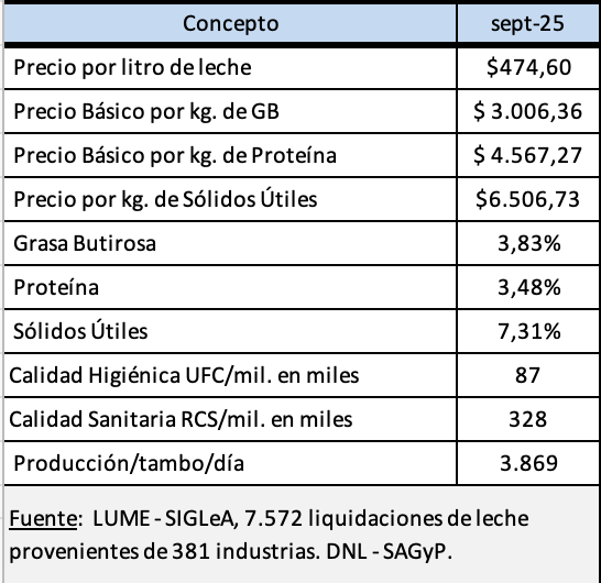 Calidad de Leche – septiembre 2025 20/10/2025