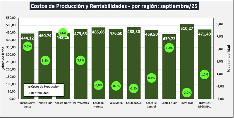 • Costos Regionales de Producción de Leche, valores actualizados a SEPTIEMBRE del 2025 27/10/2025