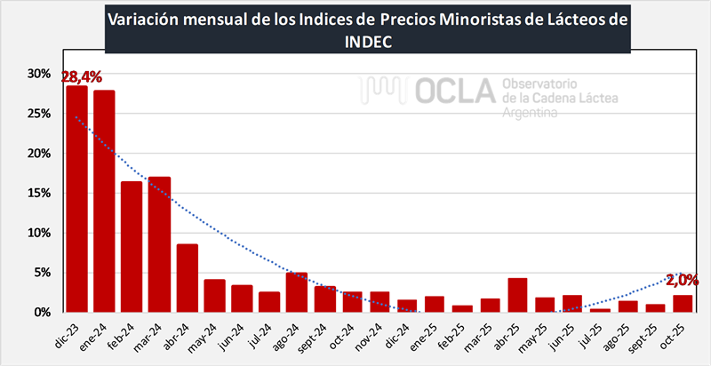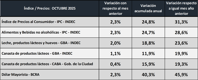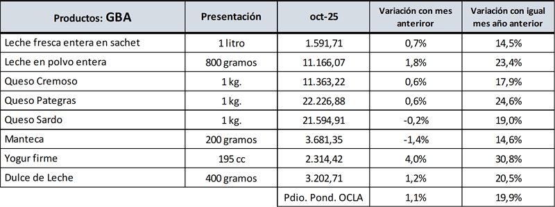 Precios de los lácteos al mes de octubre de 2025 12/11/2025