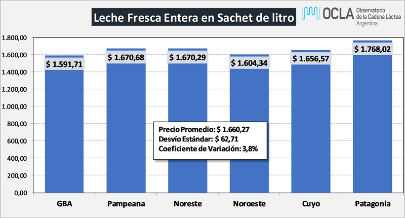 Según datos publicados por la Dirección General de Estadísticas y Censos - Ministerio de Hacienda del Gobierno de la Ciudad de Buenos Aires, los precios de los productos lácteos de esta canasta, tuvieron un crecimiento mensual promedio ponderado del 0,5%, y un incremento interanual del 20,5%. El ponderado es elaborado por OCLA sobre el mismo criterio mencionado para la canasta GBA de INDEC.