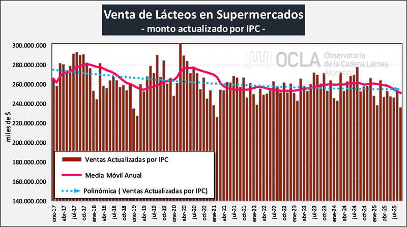 Venta de lácteos en supermercados a septiembre de 2025 27/11/2025