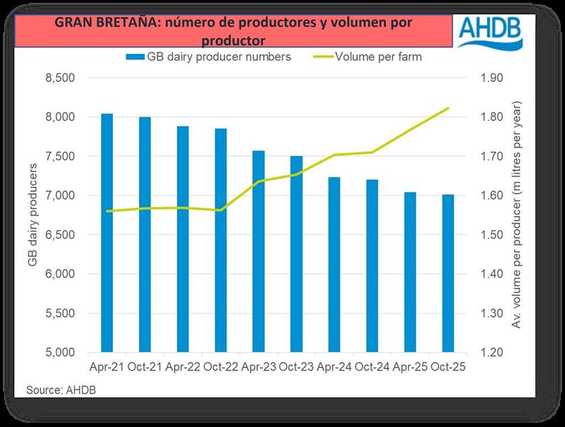 GRAN BRETAÑA: número de productores lecheros 11/12/2025