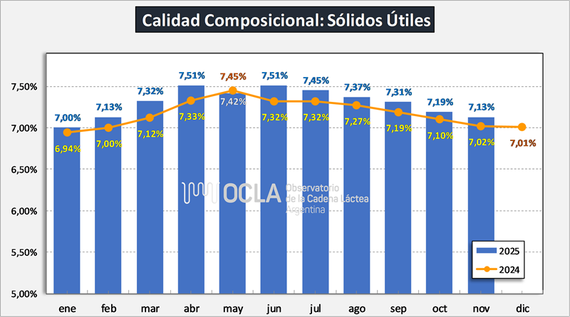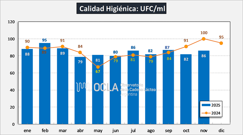 Evolución mensual de la Calidad de Leche: últimos dos años