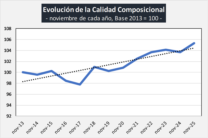 Evolución de la Calidad Composicional: a noviembre de cada año, con base 2013 igual a 100