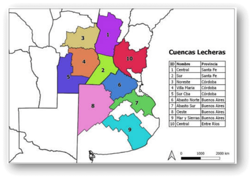 Los Costos Regionales elaborados por INTA y actualizados todos los meses, se realizan para 10 regiones productivas (las comprendidas en el mapa superior) y se calculan para el Caso Modal (modelo promedio regional) y para el Decil Superior (10% superior en productividad), y en ambos casos para tres estratos: Chico, Mediano y Grande. Por lo tanto, surgen 60 costos de los cuales, para el cálculo promedio, en OCLA sólo utilizamos los 30 costos surgidos del Análisis del Caso Modal sin incluir el Decil Superior.
