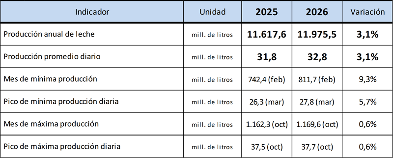 Estimación de Producción de Leche – año 2026 15/1/2026