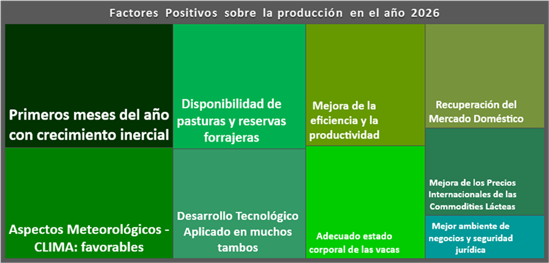 Se tabularon los principales factores que un grupo importante de referentes sectoriales indicaron como más favorables para determinar el comportamiento de la producción de leche en el transcurso del año 2026.