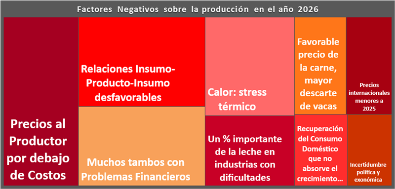 Por último, se ponderaron los aspectos que pueden incidir en forma negativa en la producción de leche en el transcurso del año 2026.