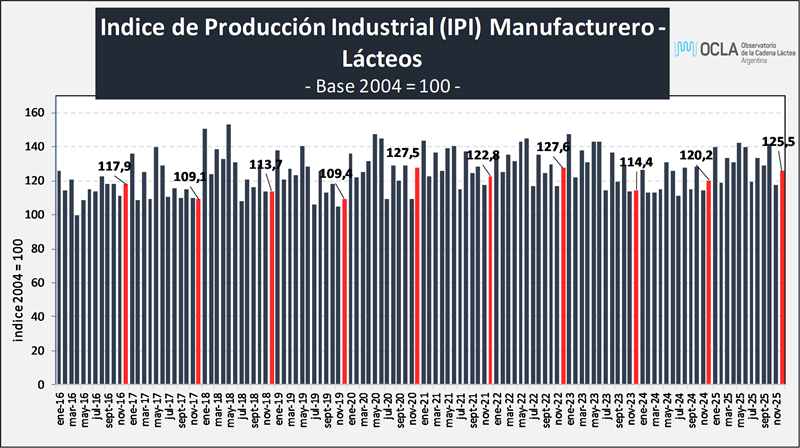 Índice de Producción Industrial Manufacturero – LÁCTEOS - diciembre de 2025