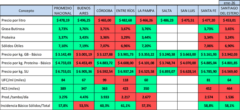 Provincias y Cuencas Lecheras: producción, calidad y precio 20/2/2026