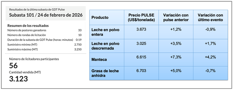 Los precios descubiertos a través de las subastas de GDT Pulse serán complementarios a los precios proporcionados por los Eventos GDT. Estos últimos seguirán siendo los eventos de gran volumen y alta liquidez, mientras que GDT Pulse tiene la intención de proporcionar precios de manera provisional.