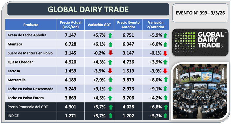 Evento N° 399 del Global Dairy Trade 3/3/2026