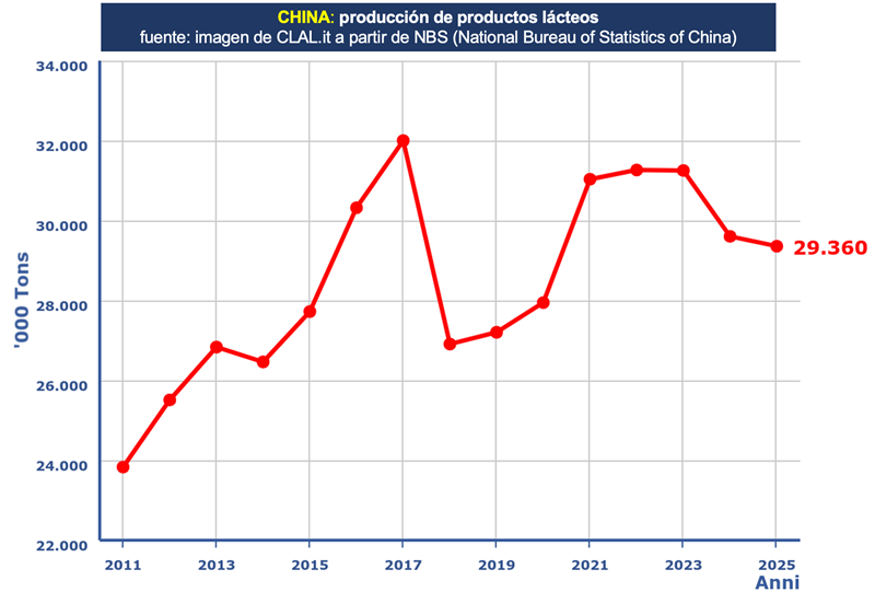 Las importaciones de productos lácteos de China venían creciendo significativamente entre 2013-2021 (salvo en la crisis de 2015) a una tasa acumulativa del 10,6% anual, con la caída en el período 2022-2024 y a pesar de la leve recuperación de +2,2% en 2025, la tasa se redujo al 3,7% anual para el periodo 2013-2025. De cualquier manera, sigue siendo China uno de los principales motores de la demanda de lácteos en el mercado internacional, punto este que varios analistas ponen en duda para el futuro.