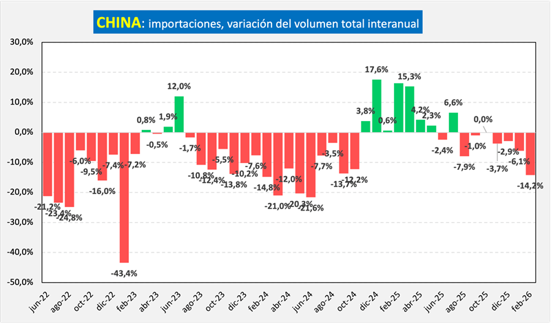 En 2025, la situación de demanda se revierte levemente y se da un crecimiento del 2,2% en el volumen importado, tratando de recuperar algo de los niveles de 2023.