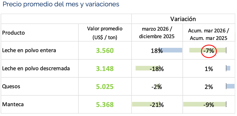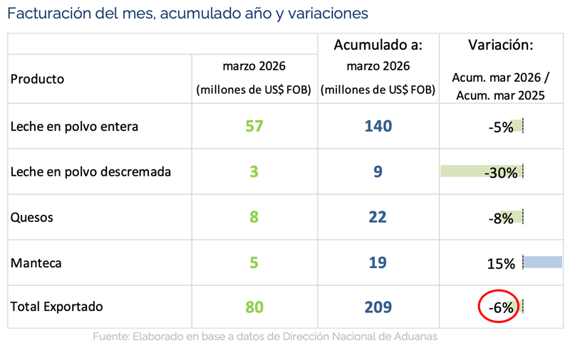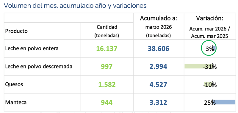 URUGUAY: exportaciones de lácteos - marzo 2026