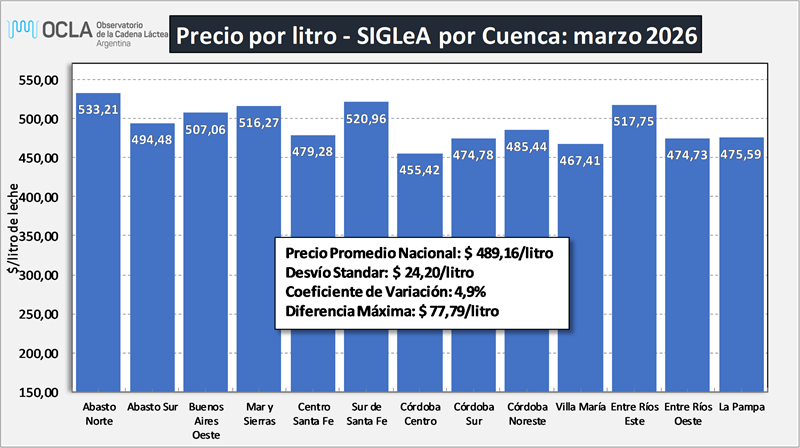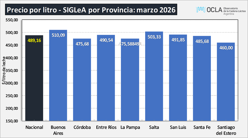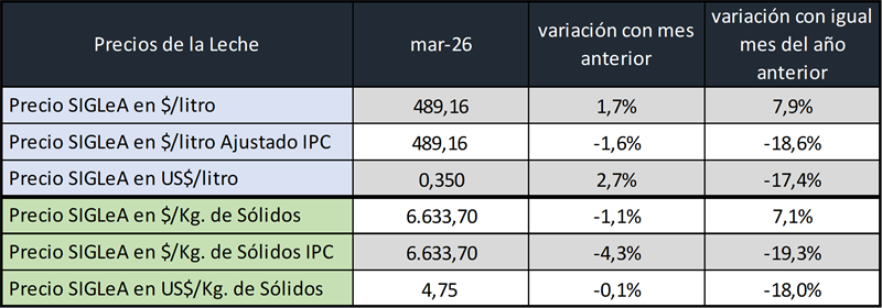 Precios de la leche al productor: marzo de 2026 16/4/2026