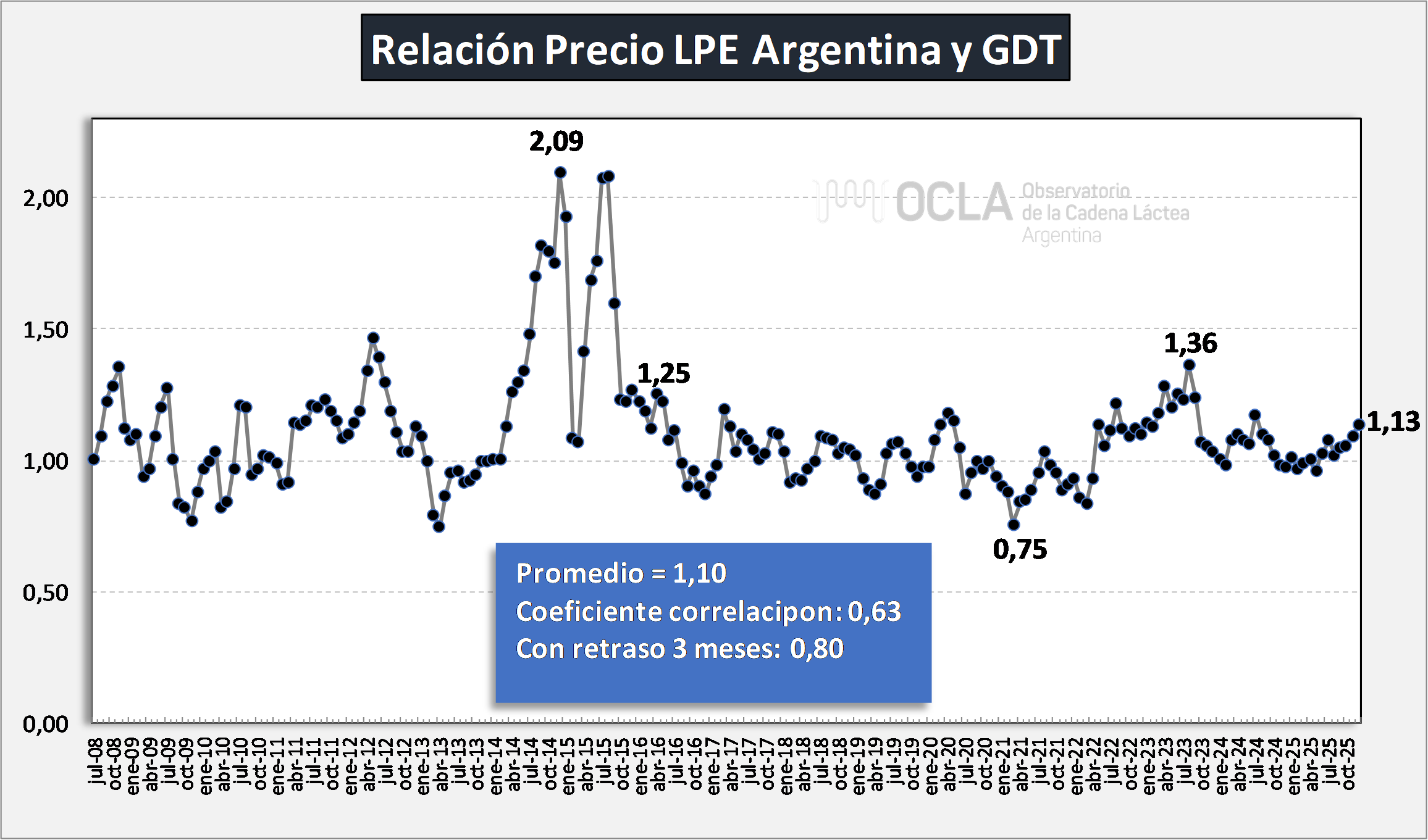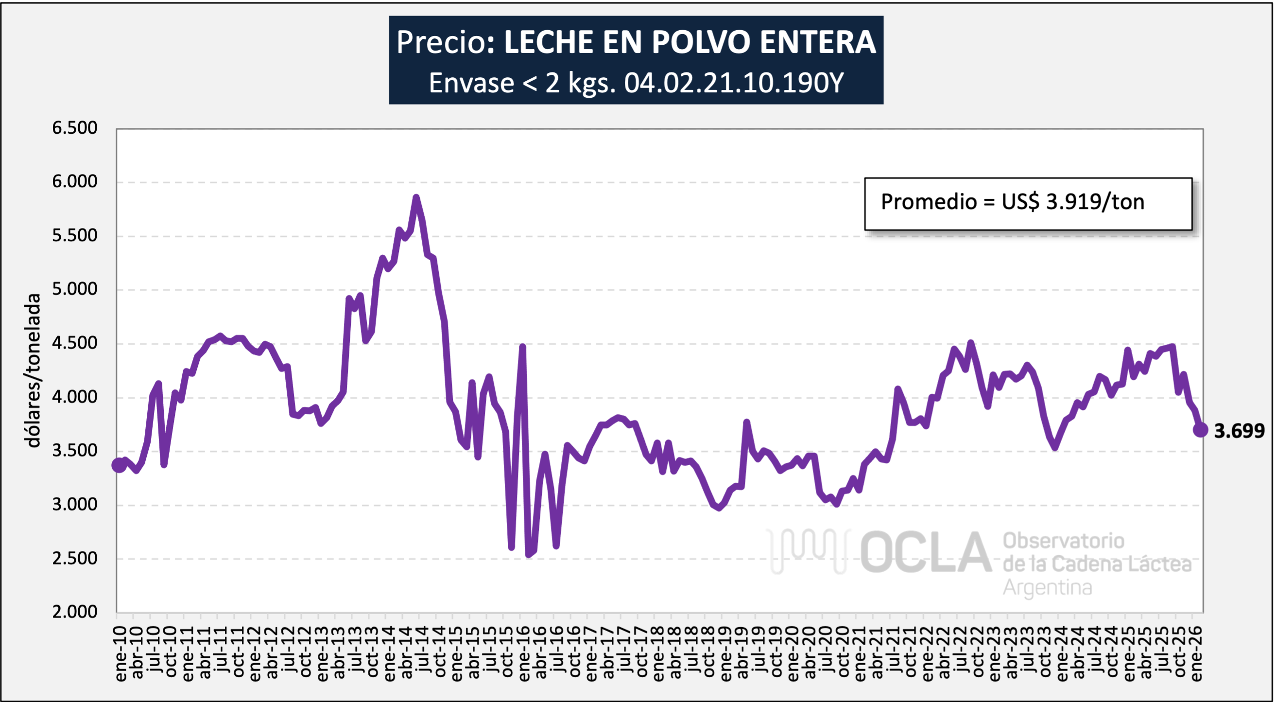 Precios promedios de exportaciones argentinas de Leche en Polvo Entera en envases de menos de 2kg (Posición 0402.21.10.190Y)