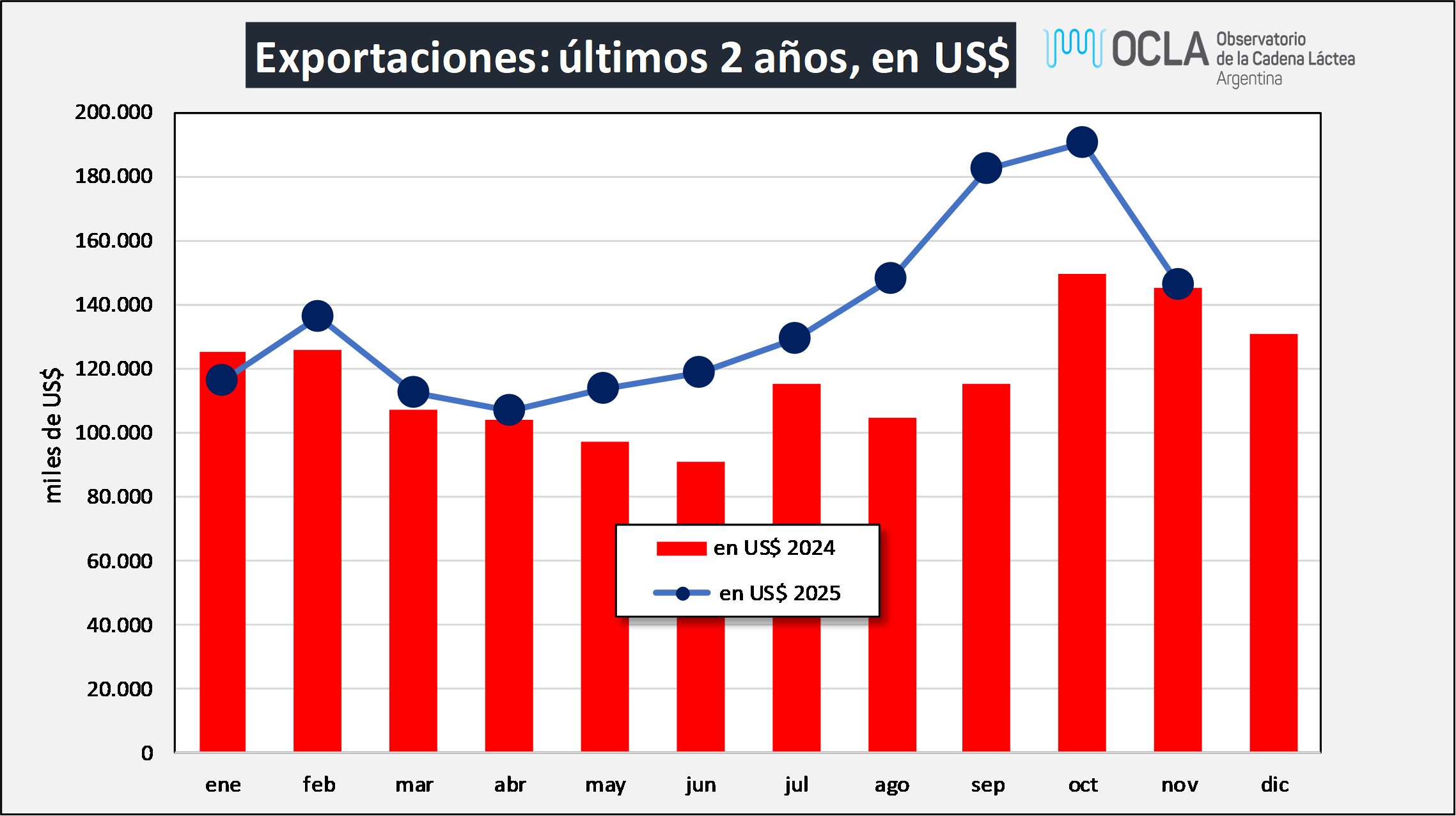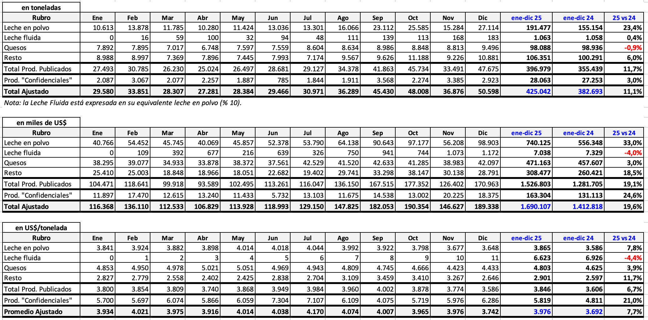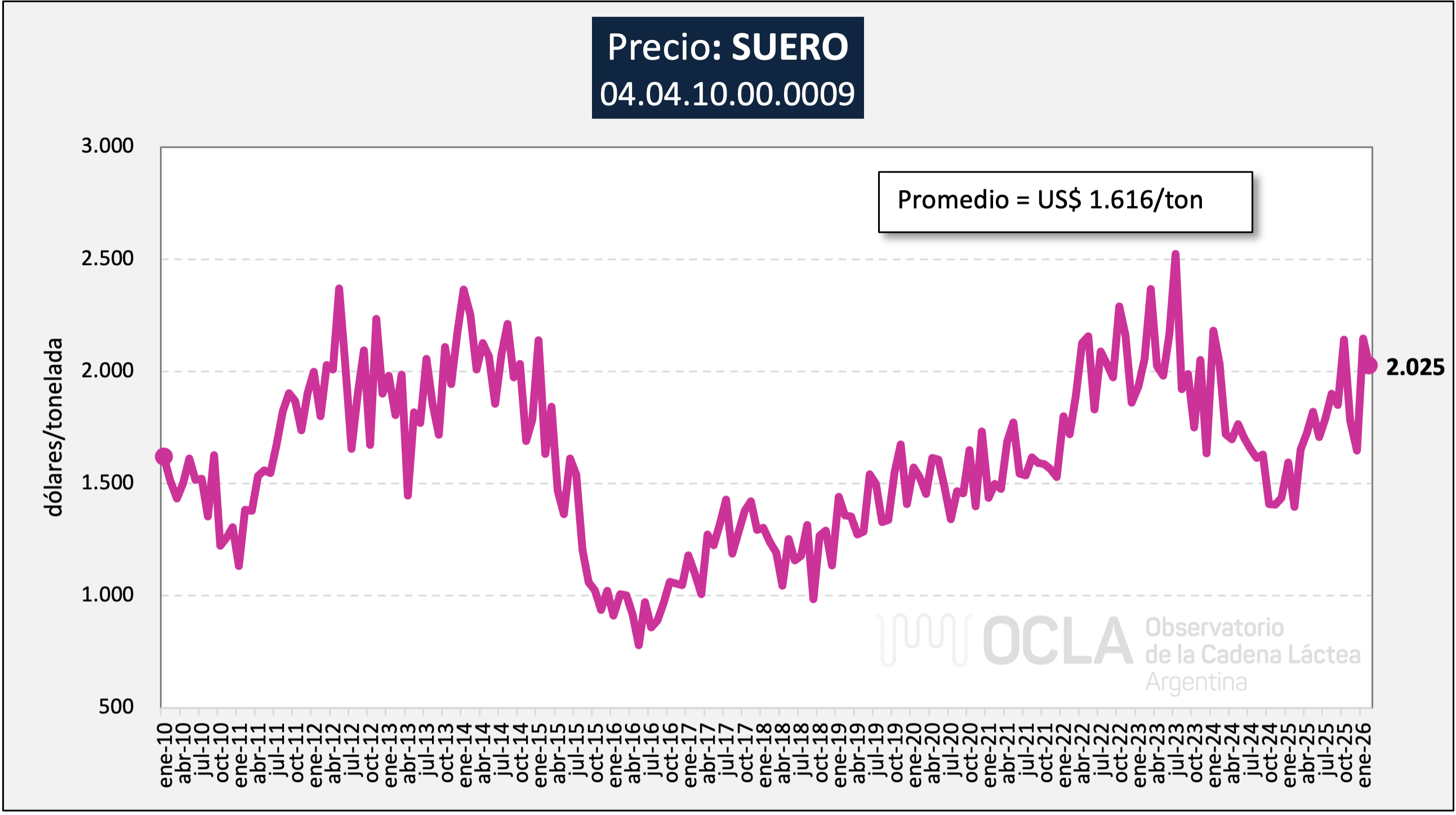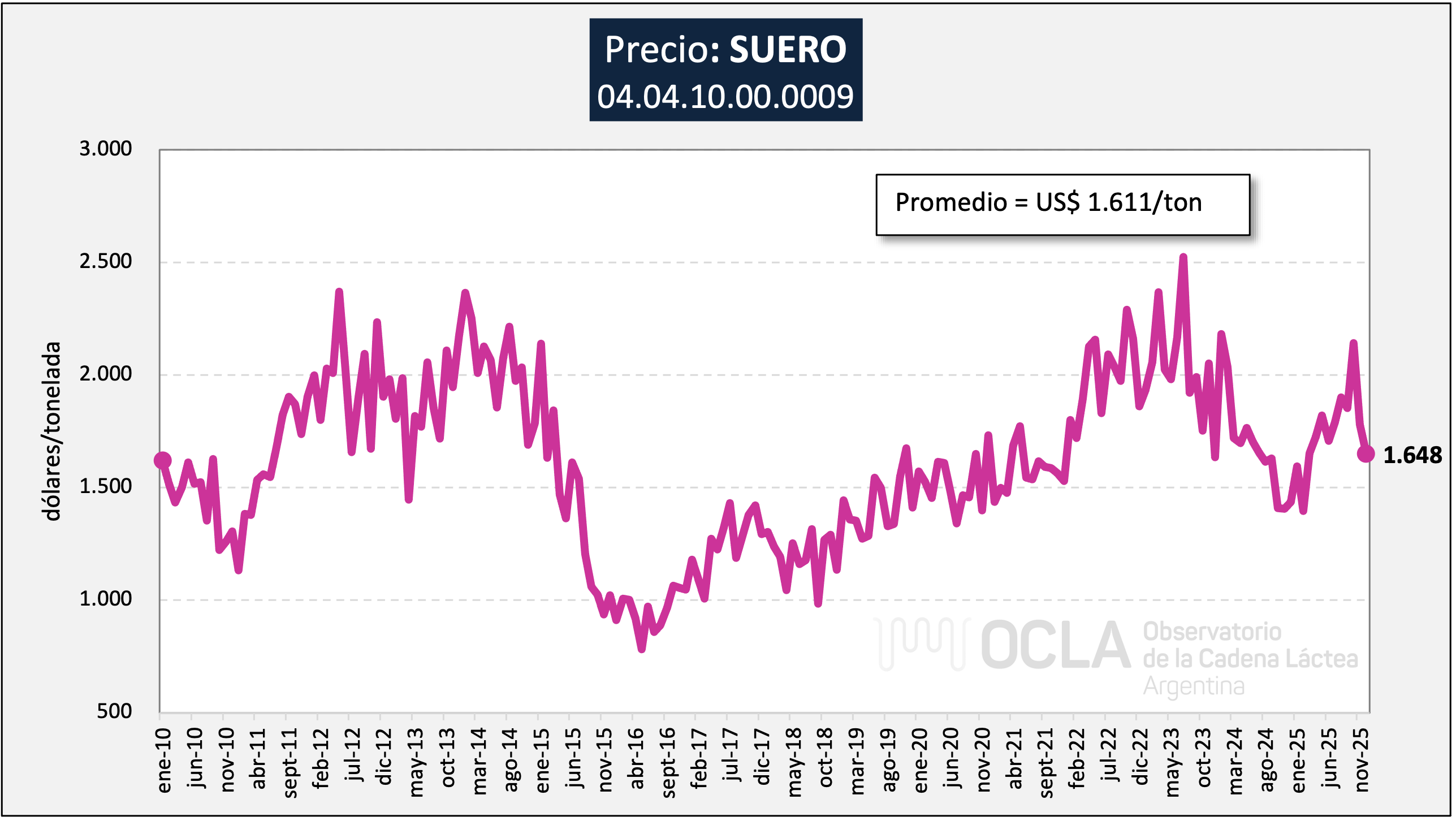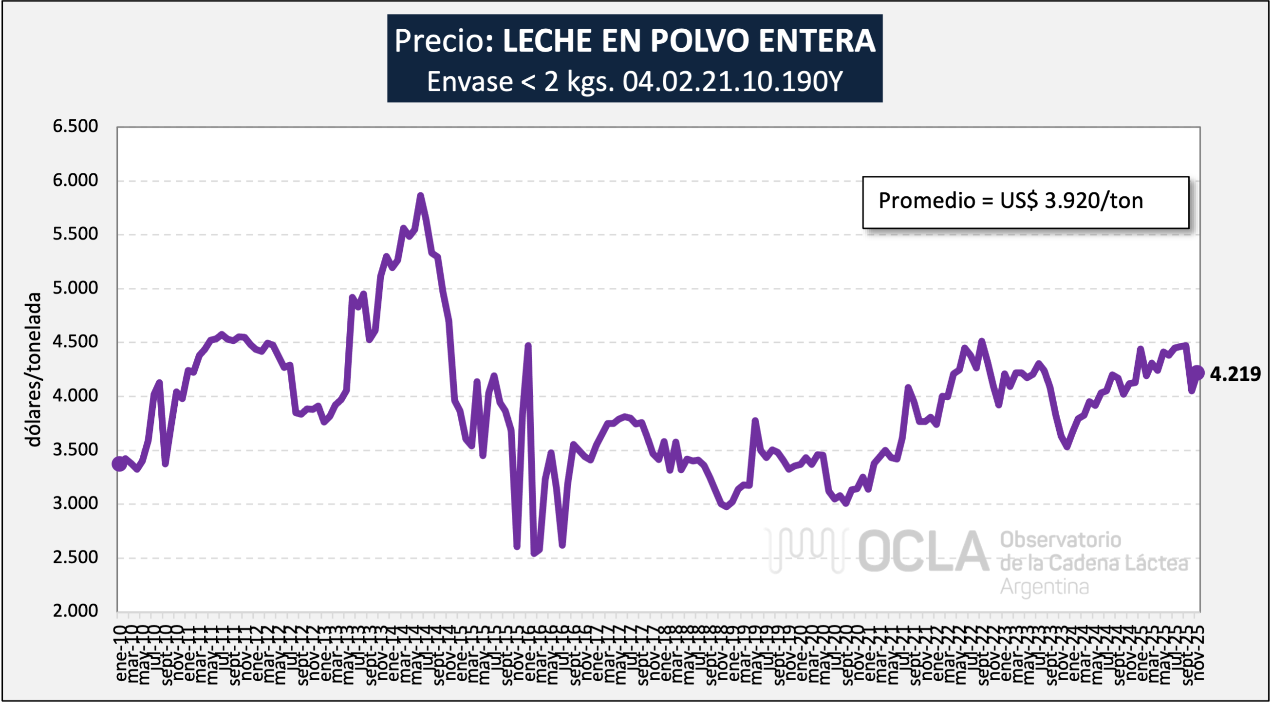 Precios promedios de exportaciones argentinas de Leche en Polvo Entera (Posición 0402.21.10.900M)