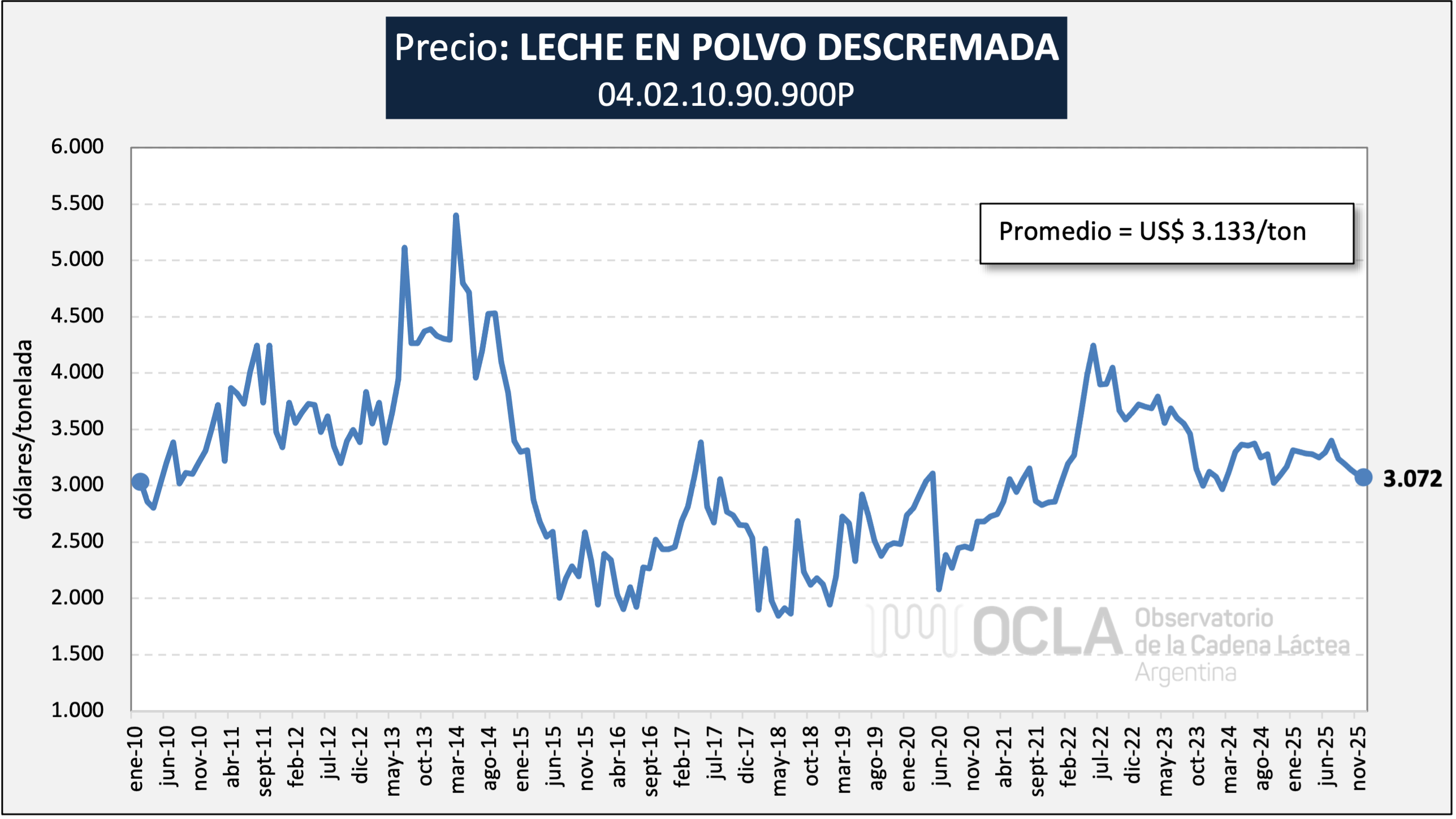 Precios promedios de exportaciones argentinas de Leche en Polvo Descremada (Posición: 0402.10.90.900P)